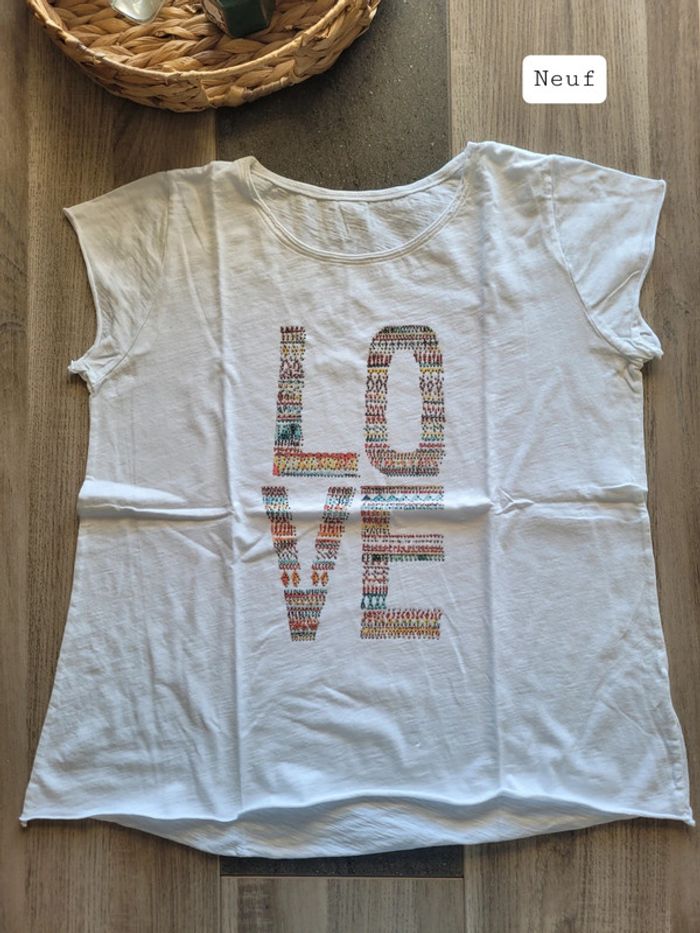 Tee-shirt manches courtes en taille unique. Neuf, Jamais porté, juste lavé et repassé. 📍Envoi par Mondial relay en 24h Nombreux d'autres vêtements disponibles, n'hésitez pas à jeter un coup d'oeil à mon dressing ou servez vous du hashtag suivant sans filtres: #morgane3007femme38 #morgane3007femme40 #morgane3007femme42