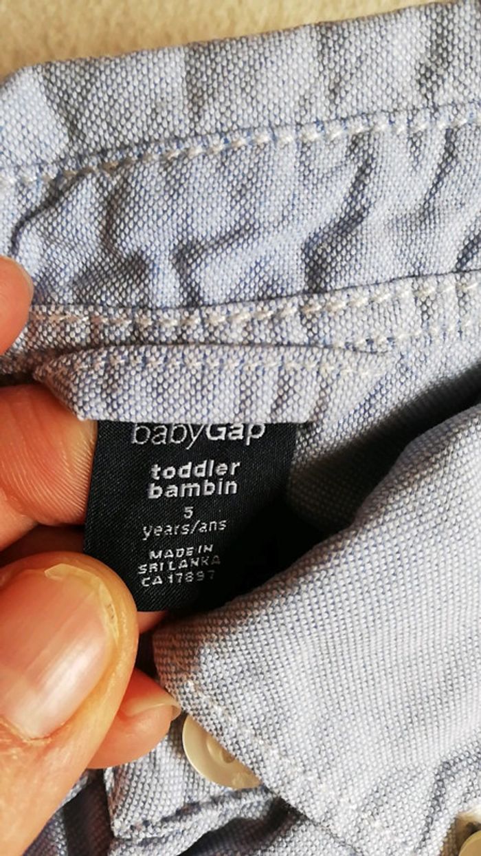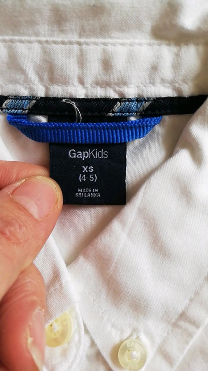 Lot de trois chemises manches longues Une blanche marque Gap kids taille 4-5 (mais plutôt 5 ans) Une bleu clair marque baby gap taille 5 ans Une rayée grise marque TAO taille 5 ans #aminata35530gars5ans