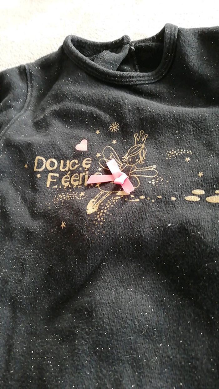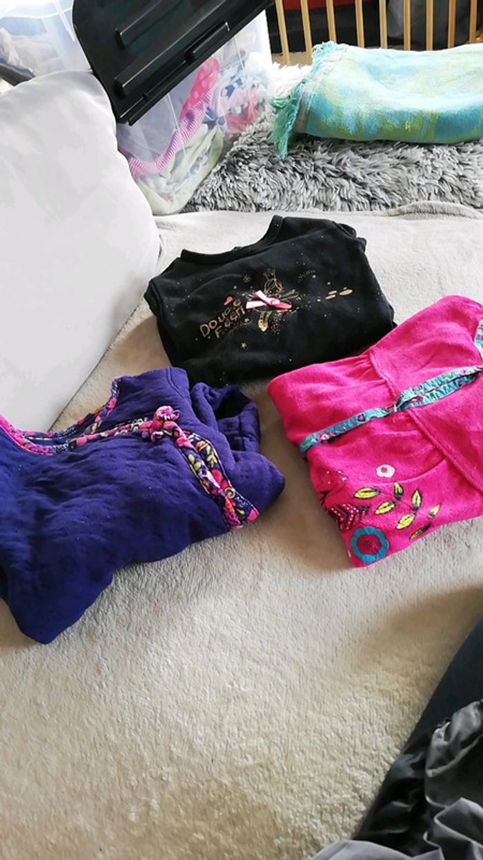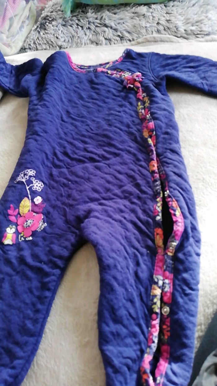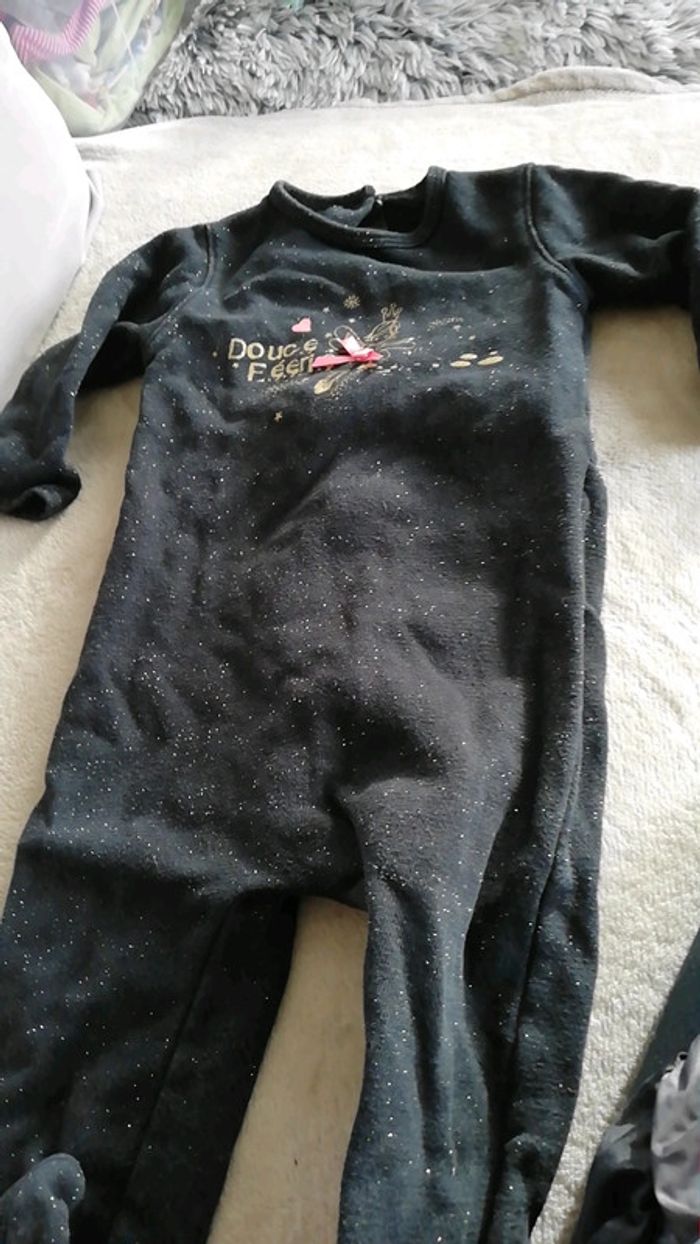 Trois grenouillères de la marque la compagnie des petits. Une noire pailletées qui s'ouvre dans le dos Une bleue melotonné qui s'ouvre sur le côté Une rose qui s'ouvre devant Taille 12 mois #aminata35530fille12mois