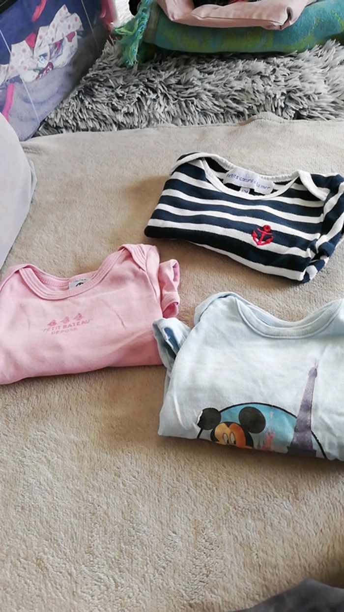 Bodies manches longues Taille 12 mois Marque petit bateau, Disney et petit cœur à la mer. A noter le flocage du Disney qui s'écaille. Je rajoute un bodie petit bateau qui a une petite tache #aminata35530fille12mois