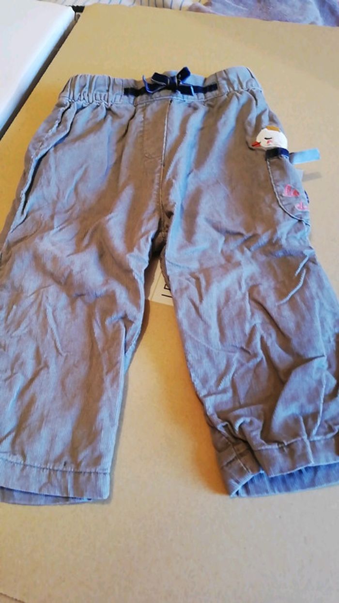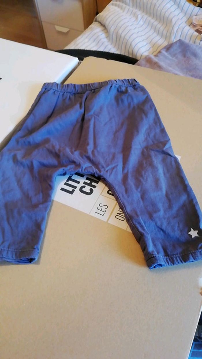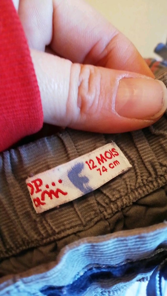 Pantalons style velours léger. Un marron avec des signes, un bleu type sarouel Taille 12 mois, marque DPAM #aminata35530fille12mois