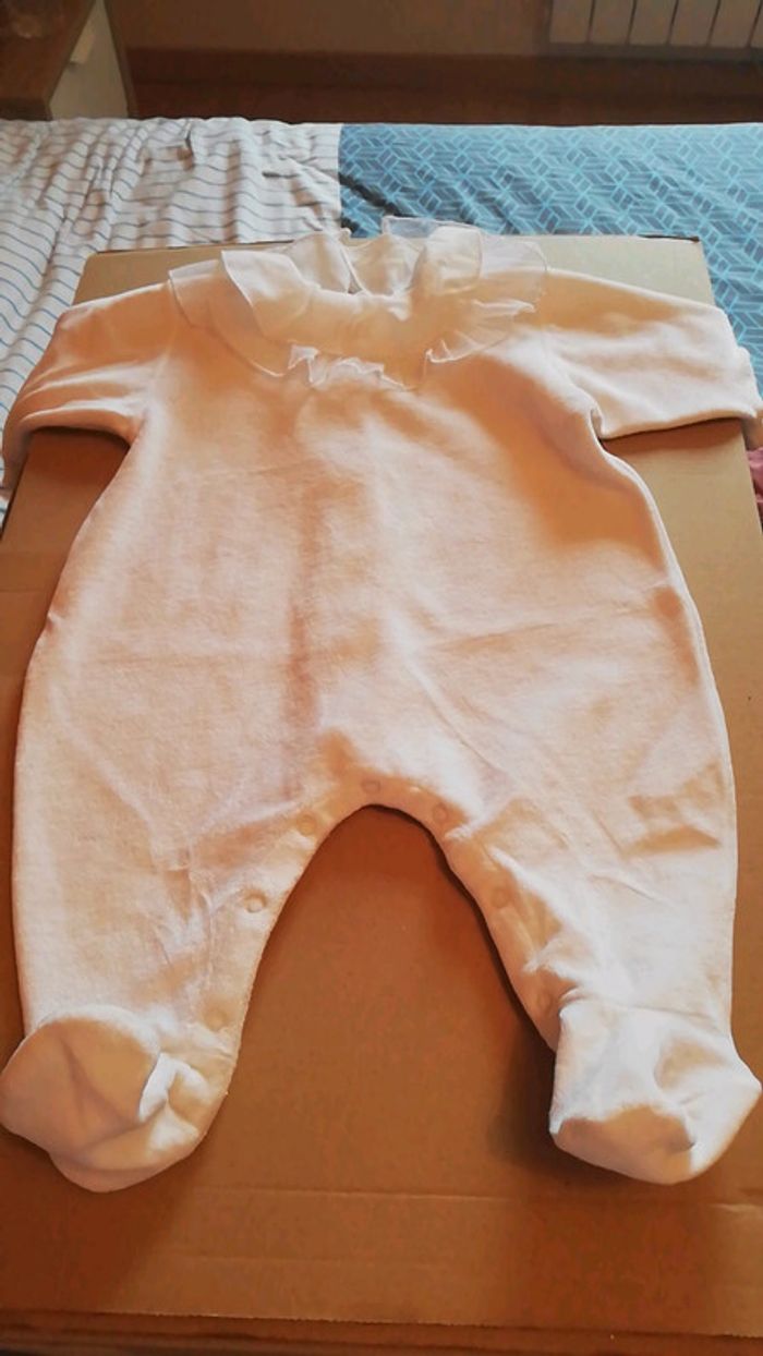 Pyjama petit bateau Blanc avec collerette Ouverture entre les jambes On ne voit plus la taille mais c'est un 60cm Donc plutôt 1-2 mois #aminata35530nouveaune