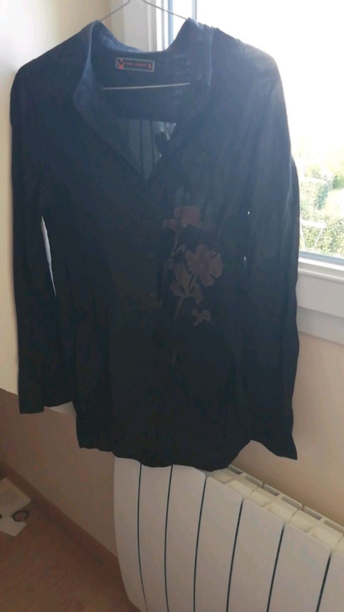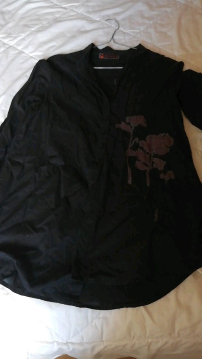 Tunique/chemise fluide de la marque cop copine Noire avec des fleurs marron #aminata35530femme38