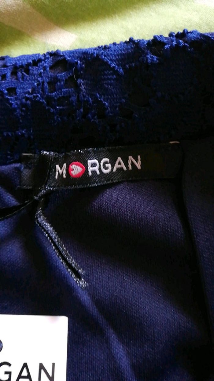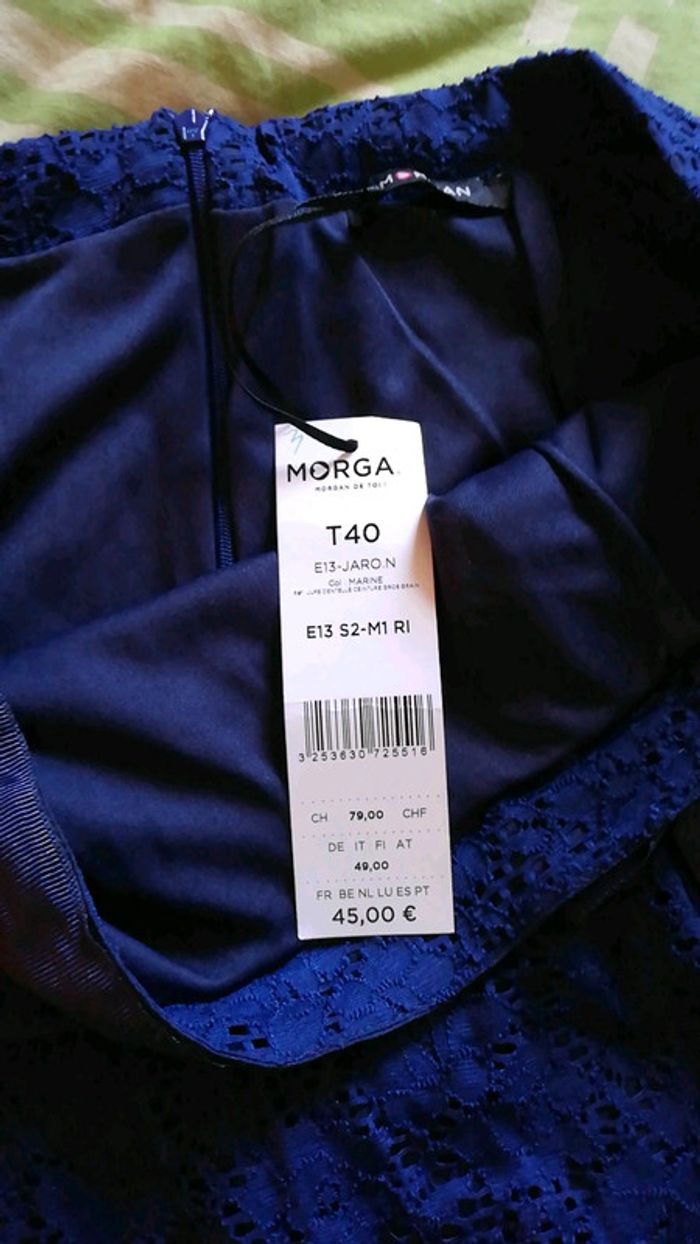 Jupe dentelle courte ceinture gros grain, couleur marine, taille 40. Marque Morgan Neuve avec étiquette #aminata35530femme40