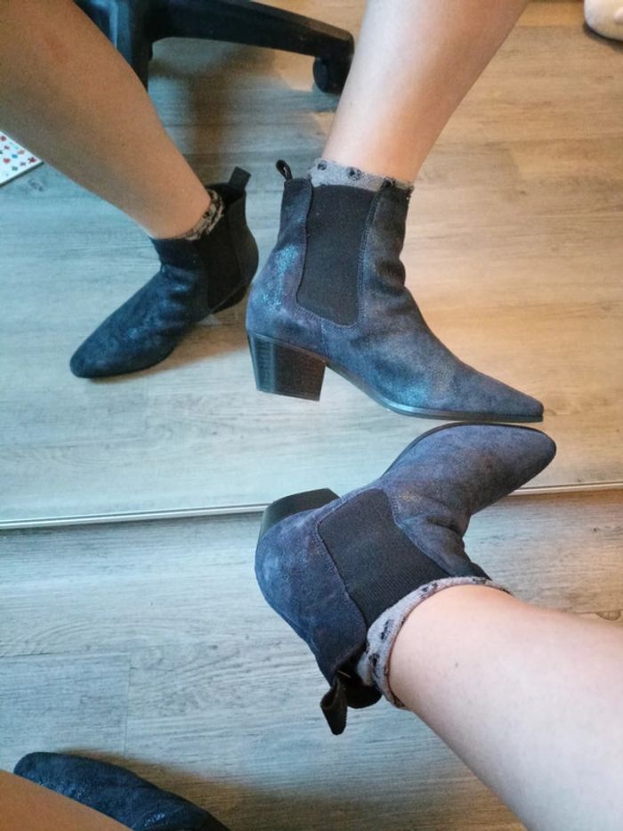 Bottines taille 37, bleu pailleté, marque San Marina, neuve, la taille est légèrement trop petite pour moi. Prix d'achat 119€ #aminata35530chaussuresfemme
