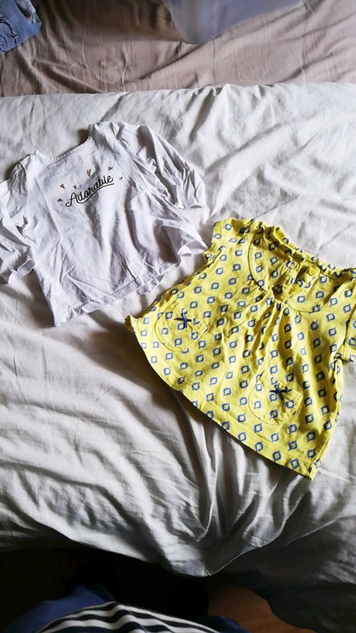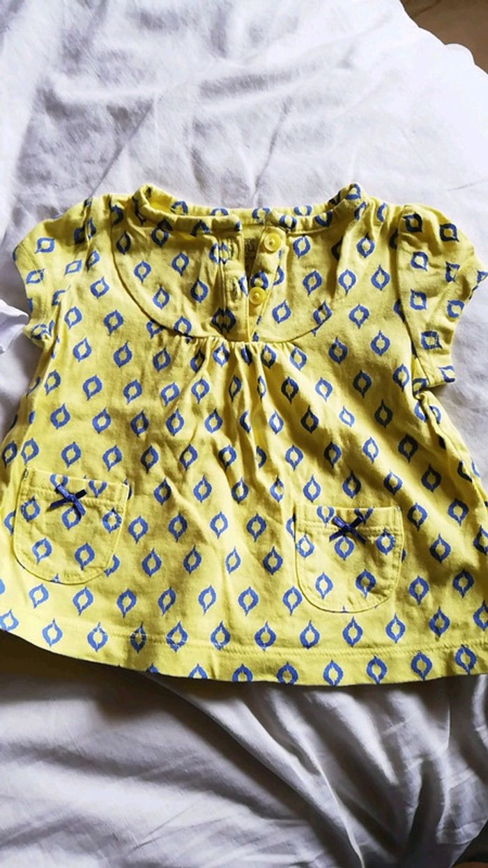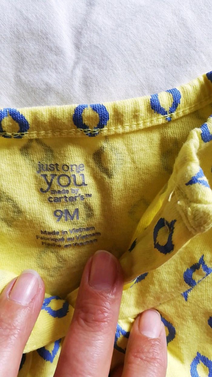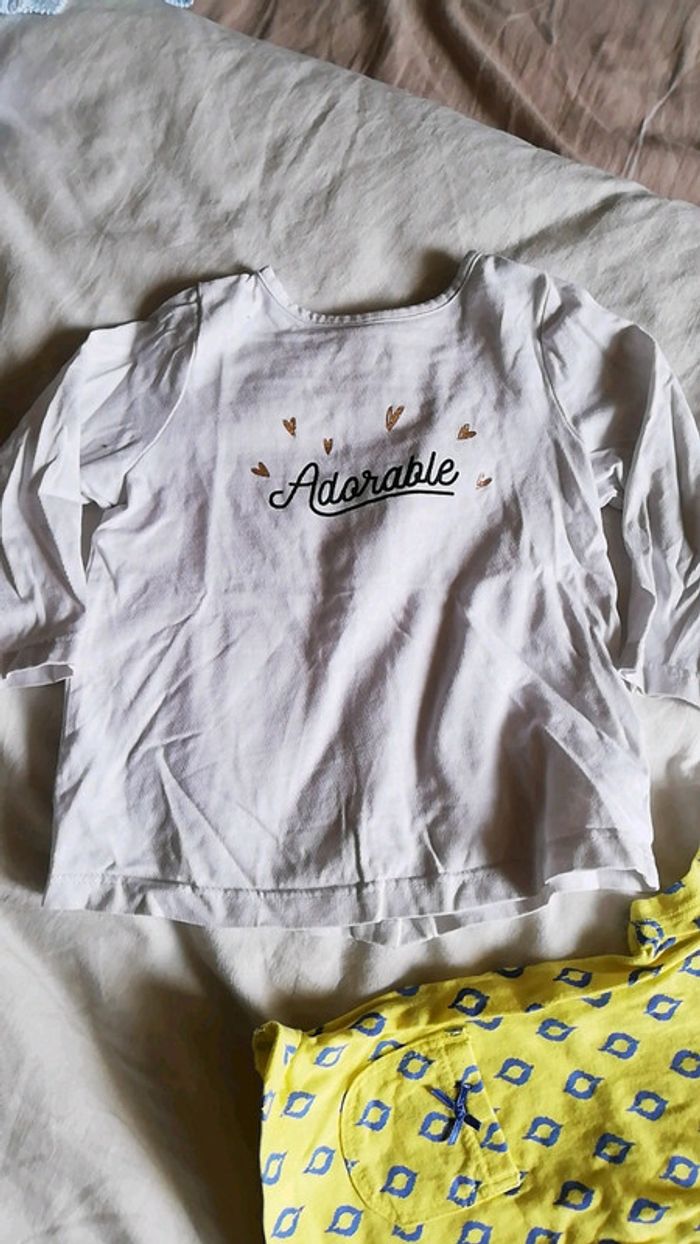 1 t-shirt manches longues marque TAO, avec inscription adorable 1 t-shirt manches courtes jaune et bleu marque carter's Taille 9 mois #aminata35530fille9mois