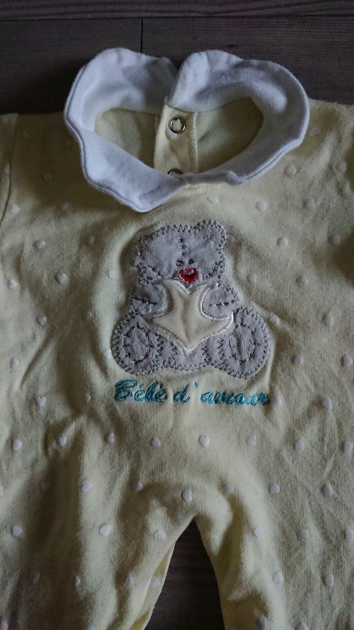 Pijama avec petit col et nounours inscription bébé d'amour Ouverture a l'arrière J'ai également d'autres pijama naissance en velours dans mon dressing