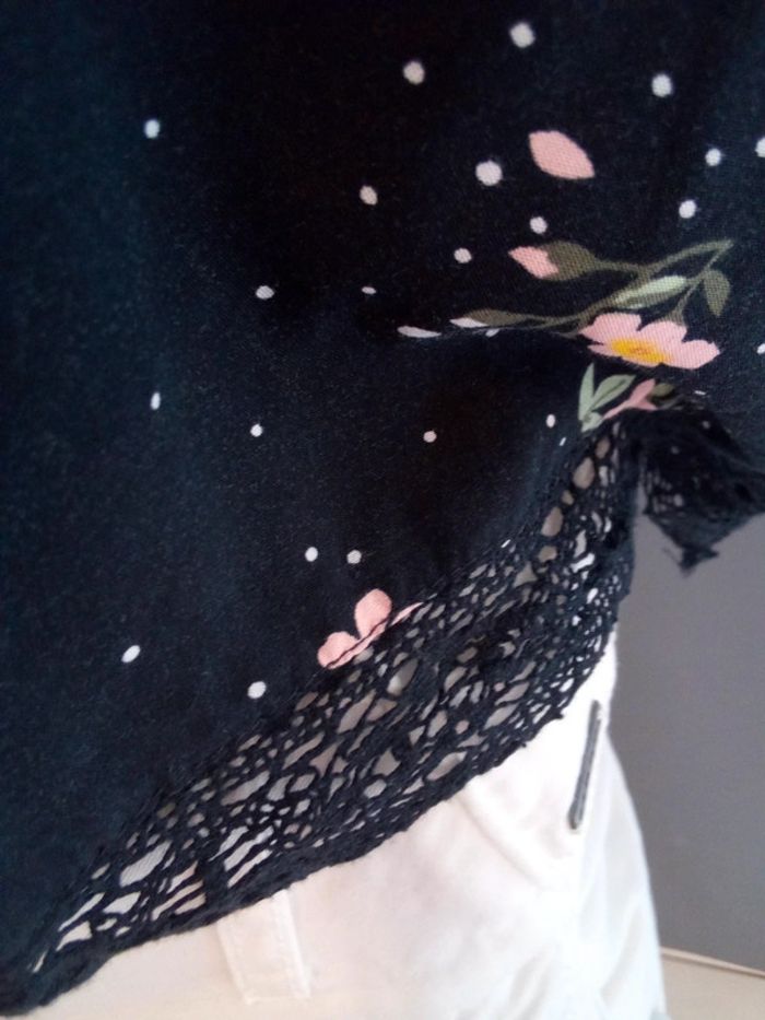 Dentelle sur bas de manches et en bas dos et devant