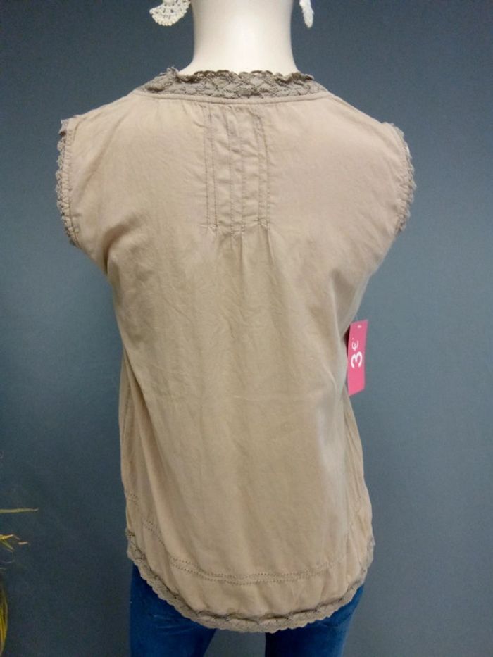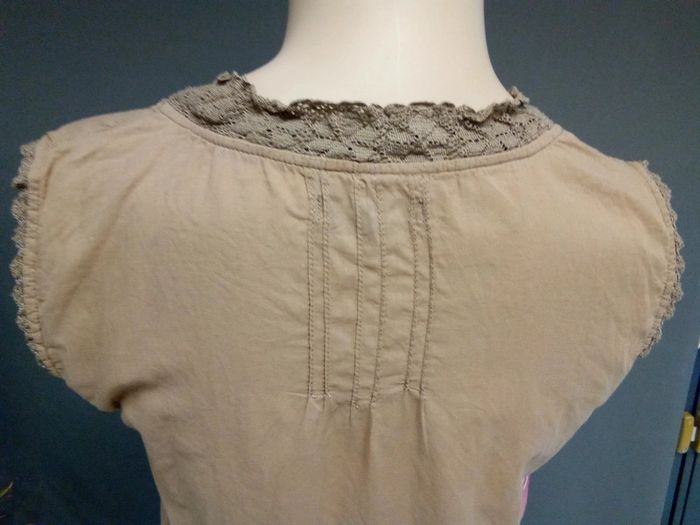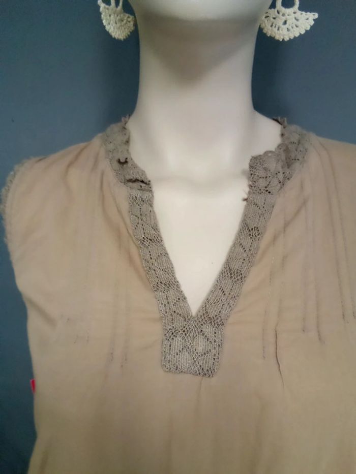 Col tunisien Dentelle sur col, emmanchures et bas Entre le marron clair et le kaki