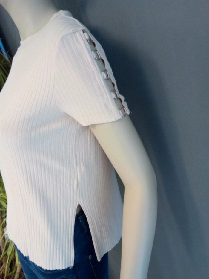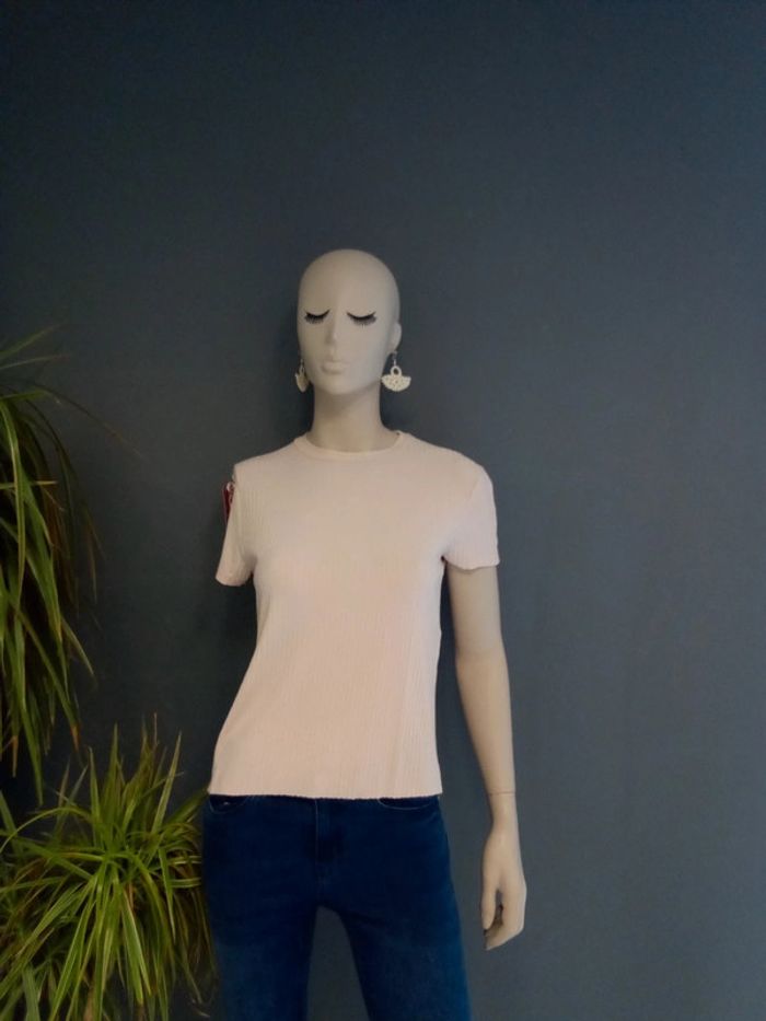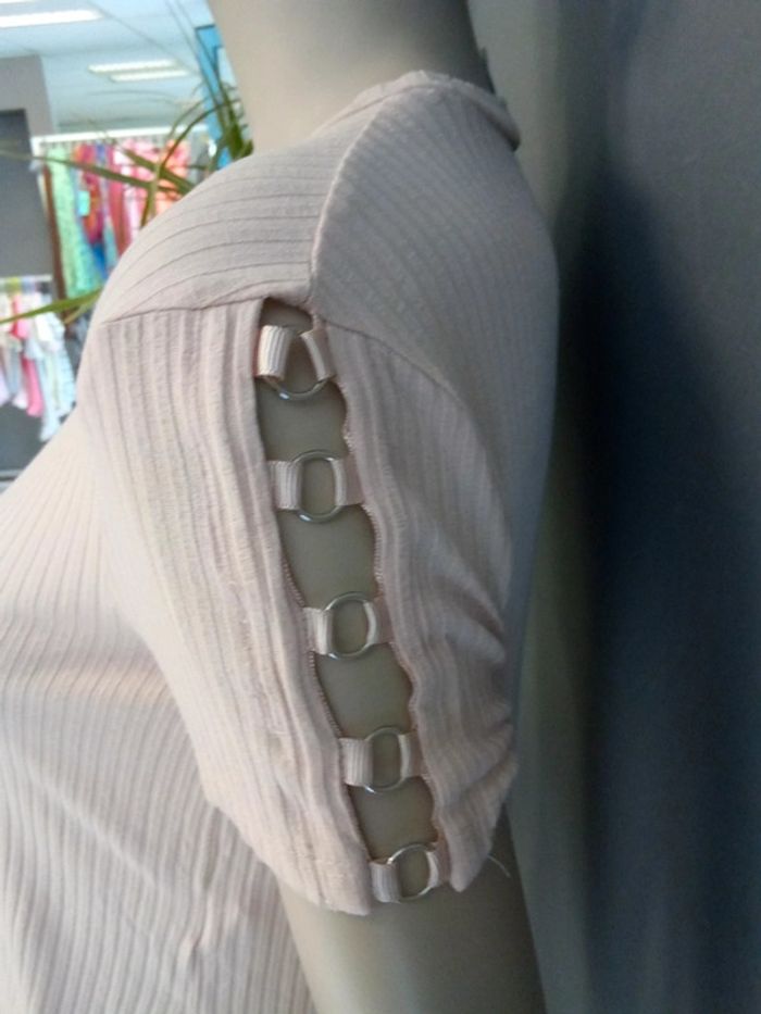 Stretch Manches courtes Manches travaillées Rose nude Fente bas côtés