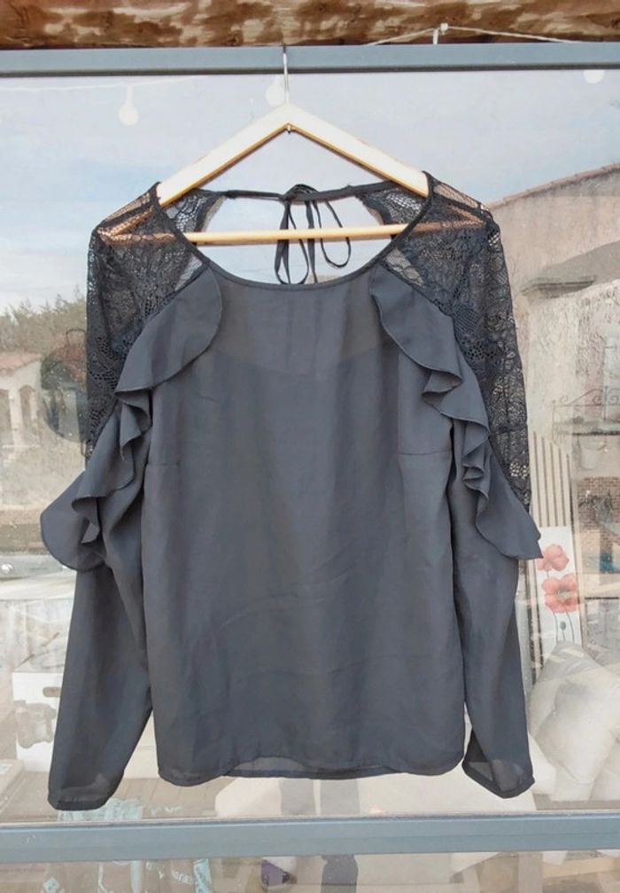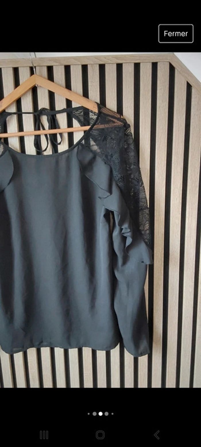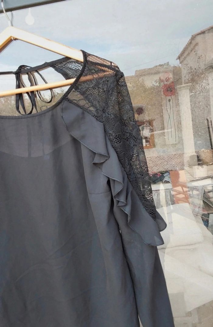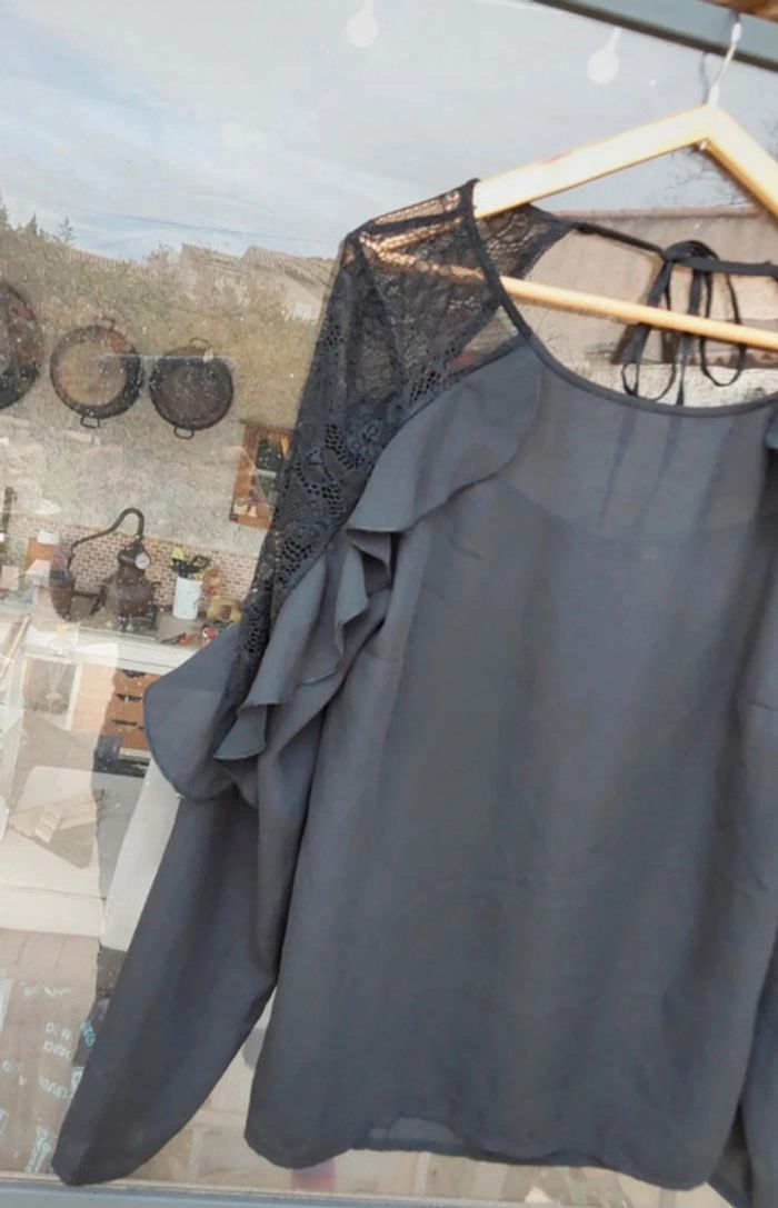 Blouse chic à  volant noir et dentelle T 40 - photo numéro 3