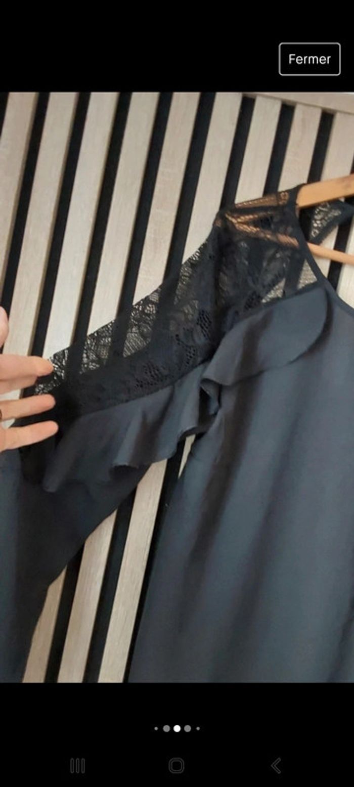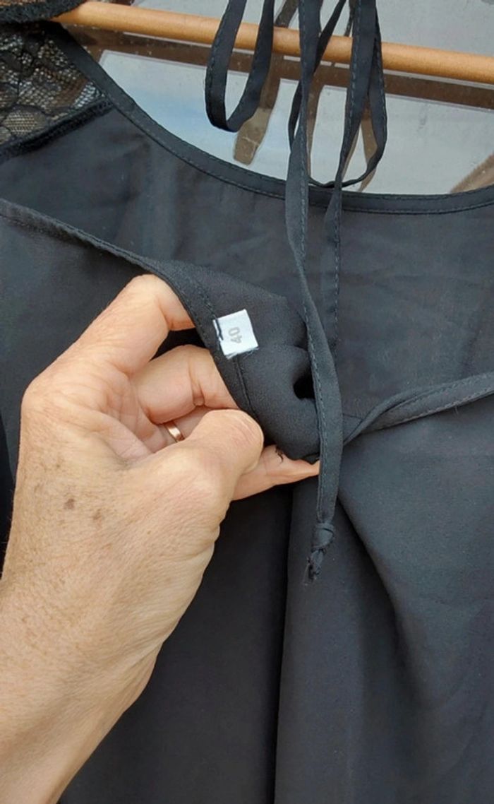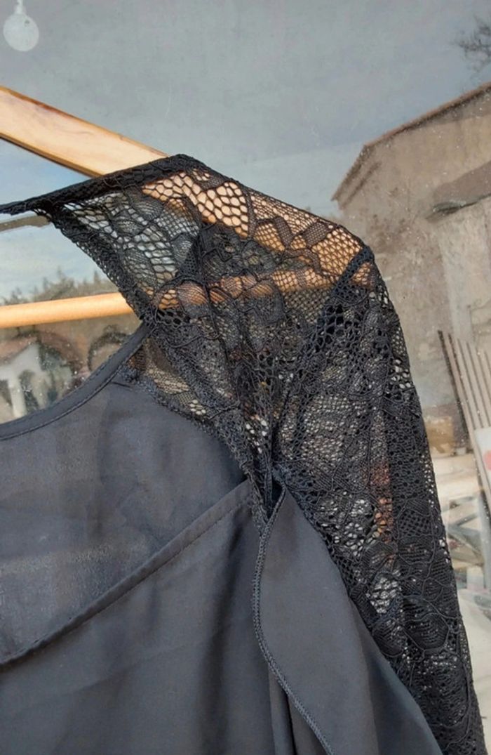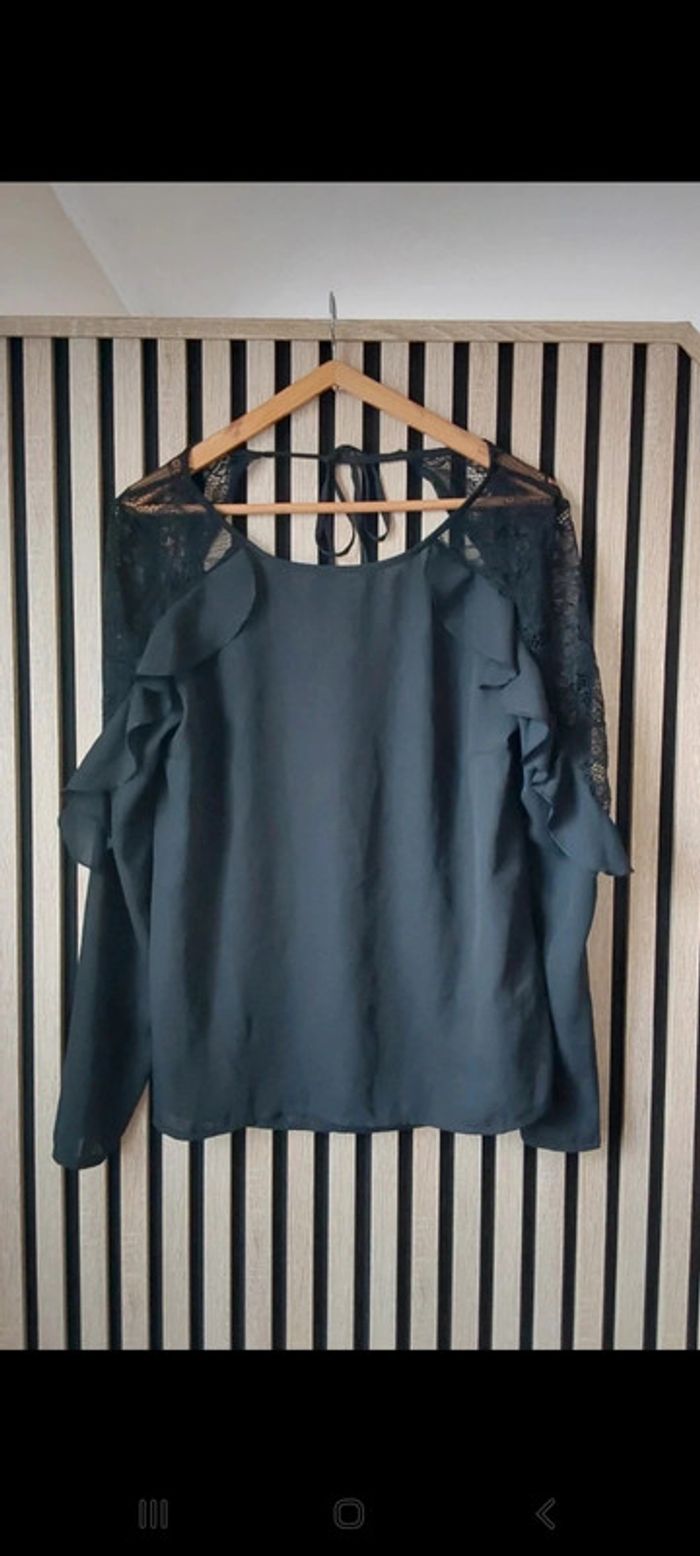 Blouse chic à  volant noir et dentelle T 40 - photo numéro 3