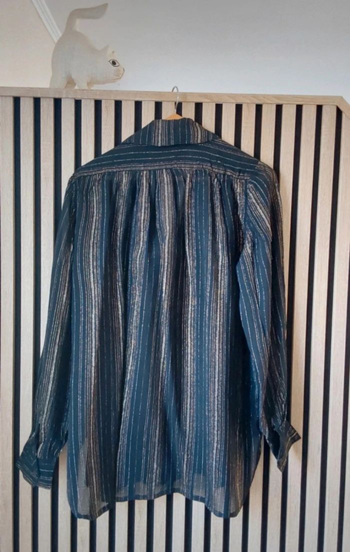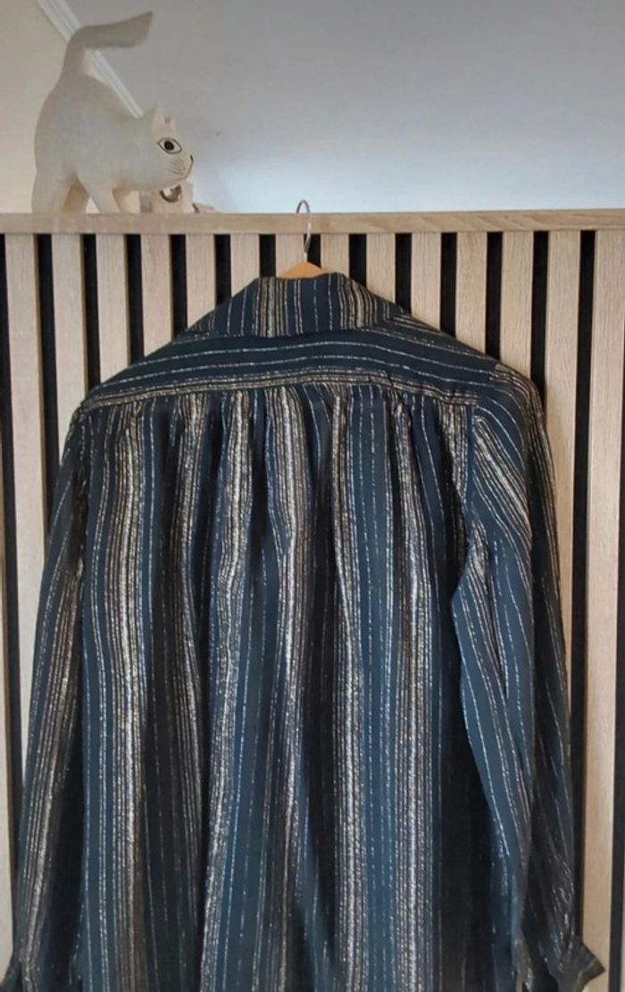 Chemise chic habillée noire avec des fils dorés et argentés T 40 /42 👉Mesures à plat 👉Épaules environ 40 cm 👉Aisselles environ 60cm 👉Longueur environ 72cm N hésitez pas à visiter mon profil et laissez vous guider par mes différents # #clementine13430femmest40 #clementine13430femmest42 #chemisereveillon #chemisechic #reveillon #noirargentdoré #noel #cérémonie