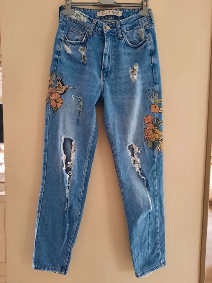 Jean brodé troué T 34 Longueur environ 1 mètre. Peu porté 👍 N hésitez pas à visiter mon profil et laissez vous guider par mes différents # #clementine13430femmeet34