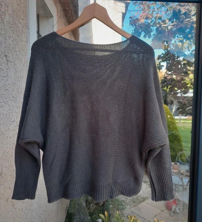 Pull marron overside manches chauve-souris T38 - photo numéro 3
