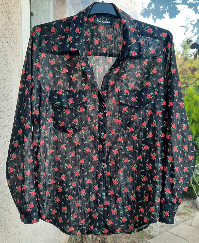 Superbe chemise noir fleurie reflets argentés T 38 The Kooples - photo numéro 1