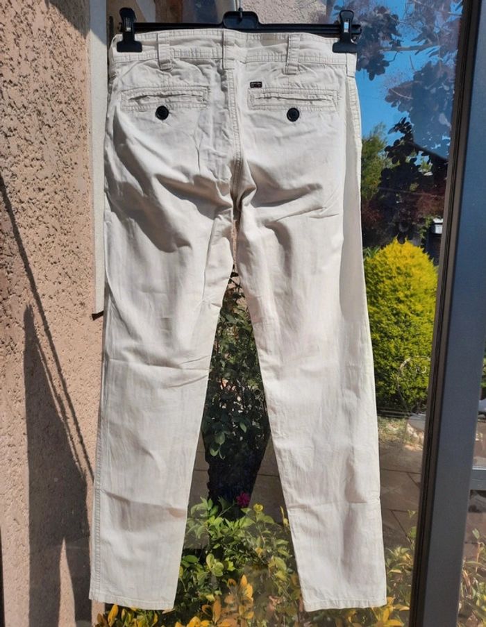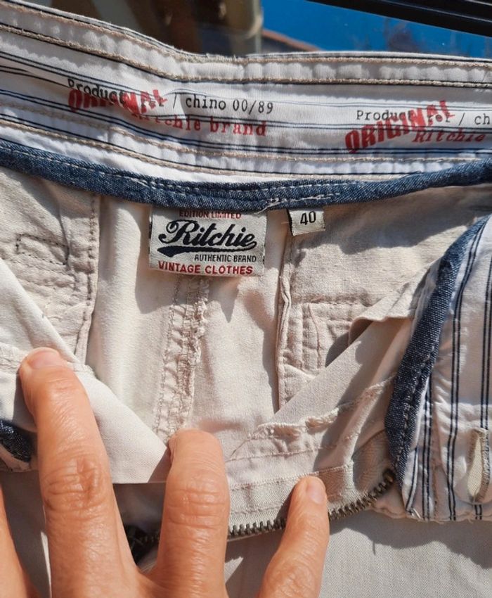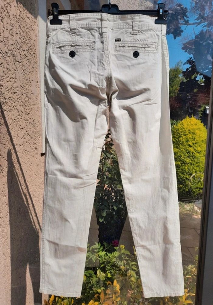 Pantalon blanc cassé Ritchie T40 / M Vintage Clothes Pantalon chino blanc cassé Ritchie T40 / M Vintage Clothes Authentique Brand 100 % coton Taille à plat 40 cm Longueur 108 cm N hésitez pas à visiter mon profil et laissez vous guider par mes différents # #clementine13430hommestm #pantalonchinohomme #pantalonbeigehommem #vintageclothes