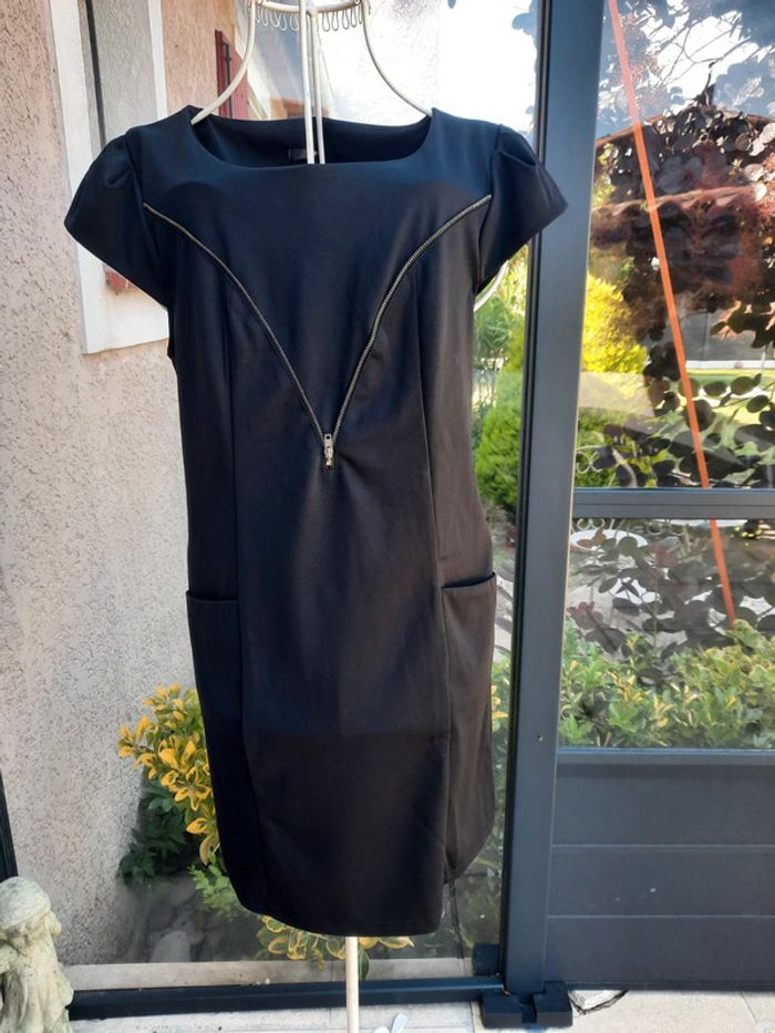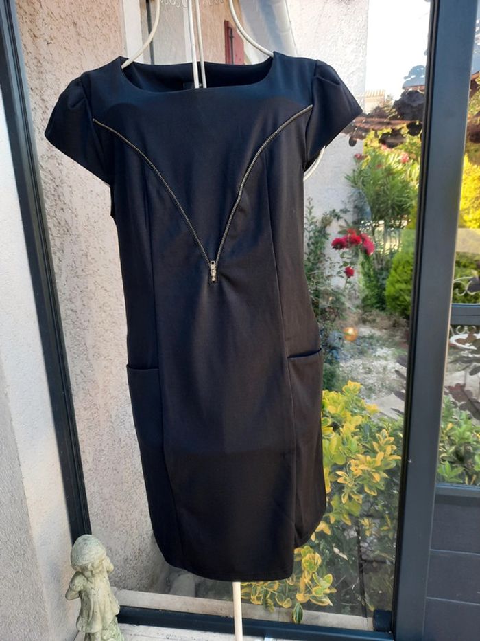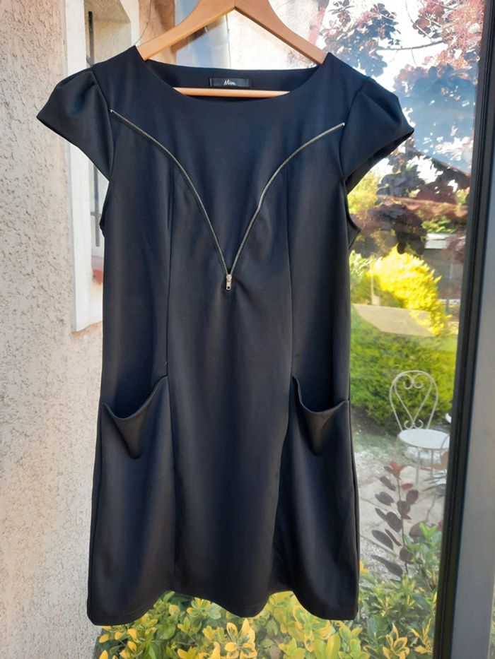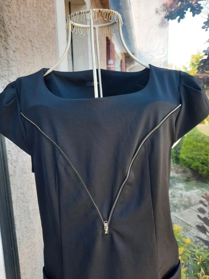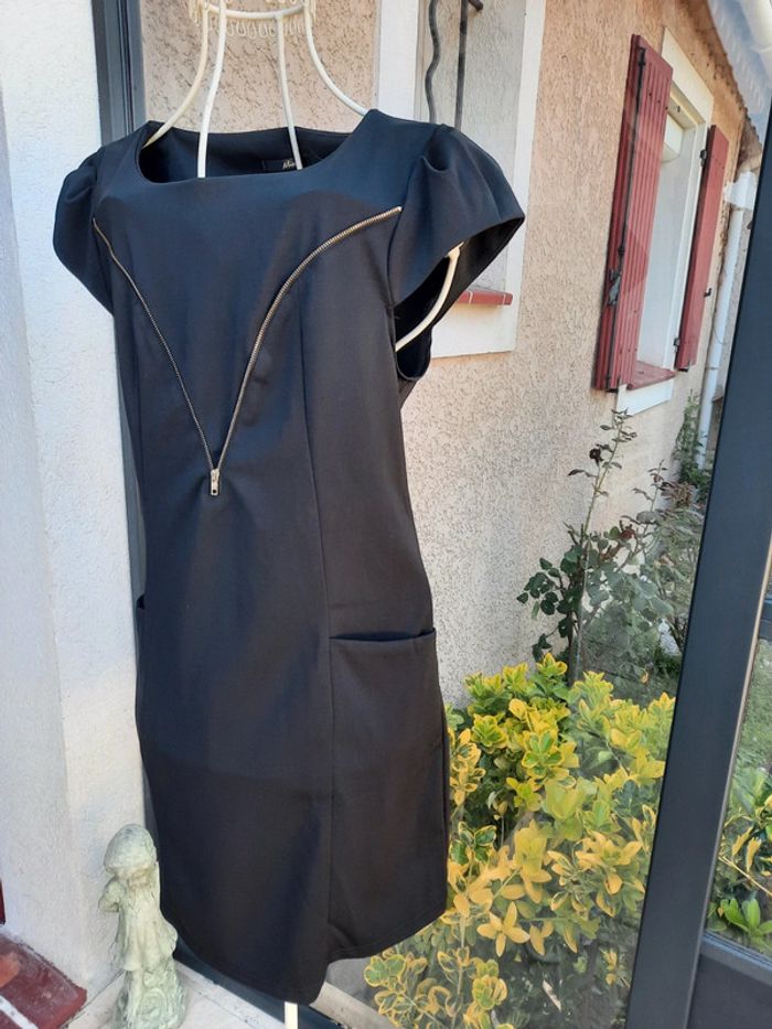 Robe noire avec une fermeture éclair à l encolure ,manches courtes légère en formes "ballon". 2 poches devant Coupe chic et élégante. Etiquette taille coupée Mesures à plat 👉Aisselles à aisselles environ 48/50 cm 👉Longueur environ 85 cm N hésitez pas à visiter mon profil et laissez vous guider par mes différents # #clementine13430femmest40 #robenoire40 #robechicpetitprix