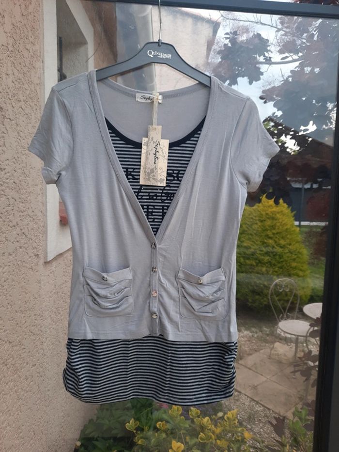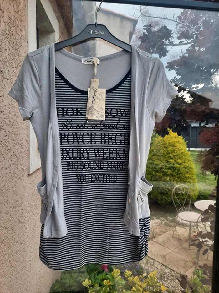 Tee shirt tunique et son gilet Neuf avec étiquette T - photo numéro 1