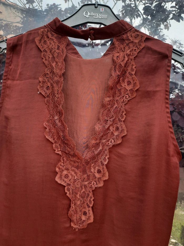 Top débardeur satin marron et dentelle T 42/44 - photo numéro 3
