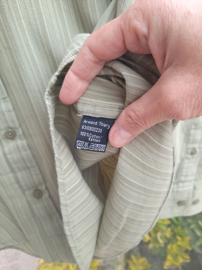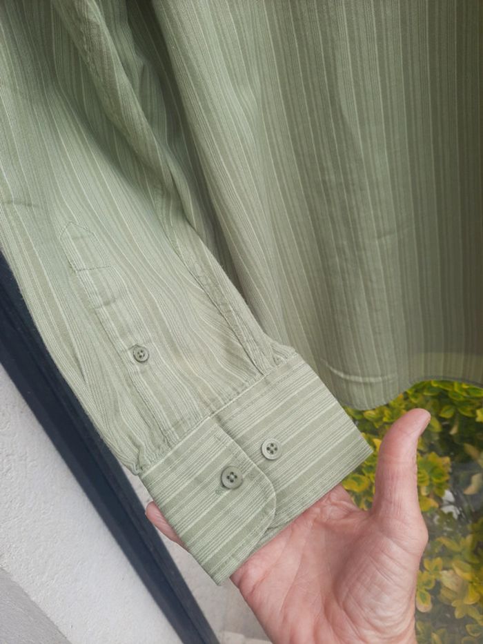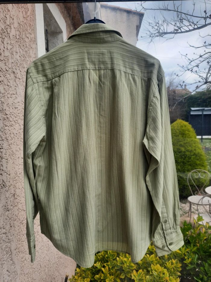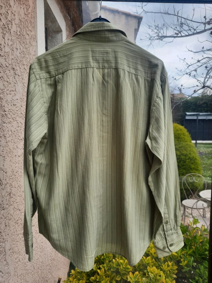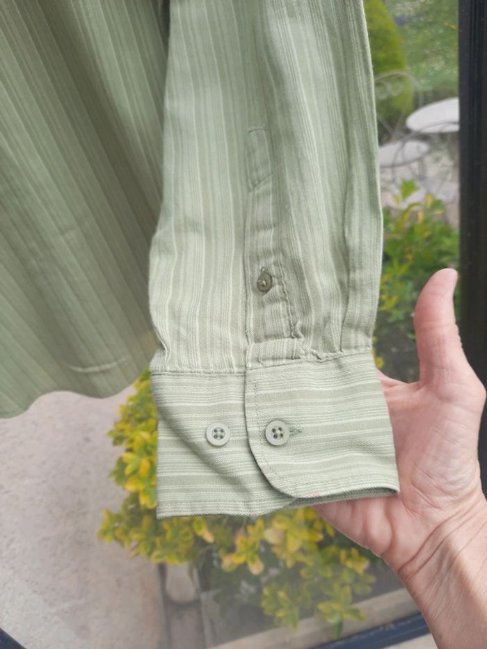 Fines rayures vert et vert kaki clair Manches longues et en parfait état 👍 100 % coton N hésitez pas à visiter mon profil et laissez vous guider par mes différents # #clementine13430hommestl #armandthieryhommel #chemisearmandthiery