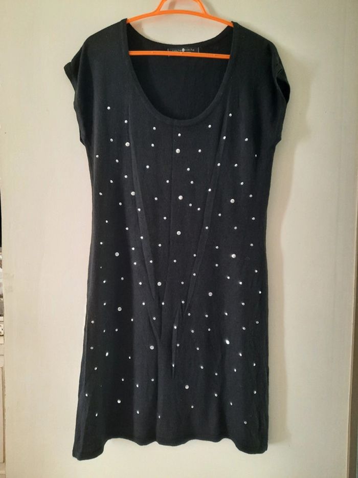 Jolie robe chic avec fantaisies argentées Largeur entre 45cm et 50 (extensible) Longueur environ 85 cm Très douce Comme neuve #clementine13430femmest40 #robenoire40 #cachecache40 #robecachecache 🌺🌹🌺🌹🌺🌹 N hésitez pas à suivre mes # pour trouver d autres petits trésors dans mon dressing(ils sont dans mon profil😉) Je publie souvent, abonnez vous pour suivre mes nouveautés, je réponds à toutes vos questions avec grand plaisir, et je poste dans la journée, le lendemain au plus tard📦 🌺🌹🌺🌹🌺🌹
