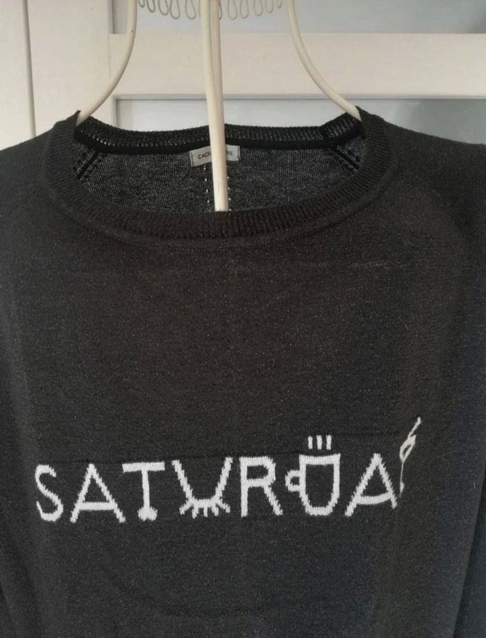 Pull fin noir légèrement irisé Étiquette taille coupée, c est un 40. Je vous donne les mesures à plat 👉Épaules environ 50 cm 👉Aisselles à aisselles 53cm 👉Hauteur 57cm Tissu fin,fluide N hésitez pas à faire un petit tour dans mon profil et laissez vous guider par mes différents # #clementine13430femmest40 #pullnoir40 #pullfin40 #cachecache40