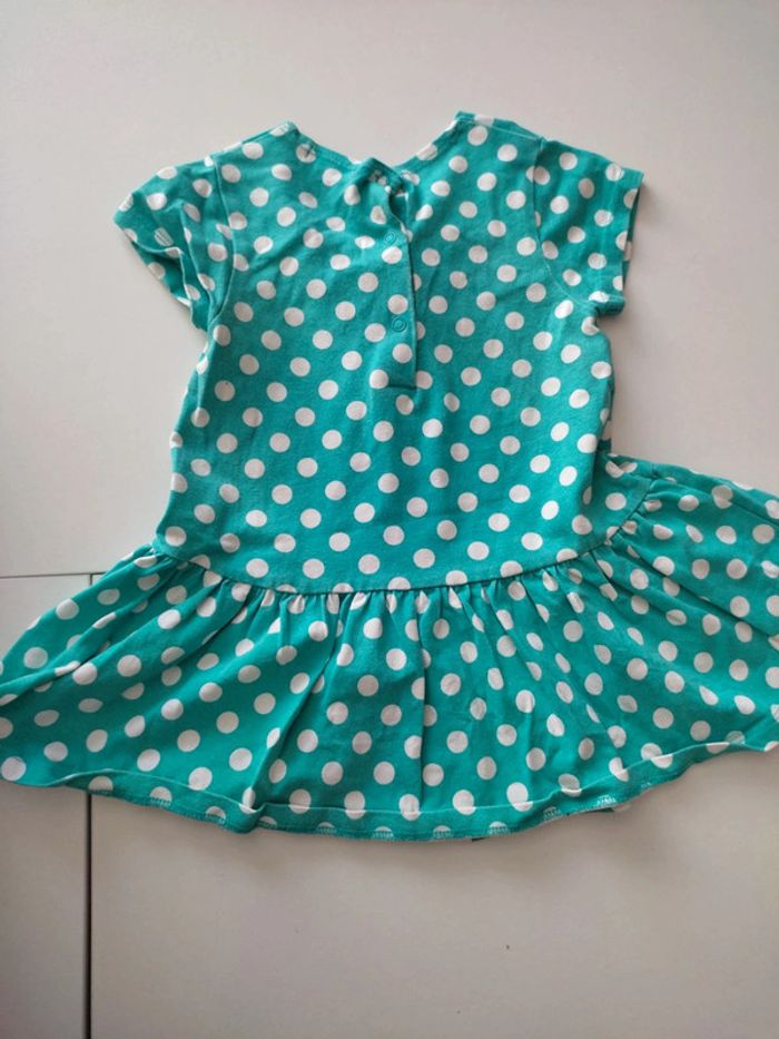 Robe verte à pois blancs avec un petit noeud Boutons pression à l'arrière Taille 12 mois (74 cm) 96% coton 4% elasthane Foyer non fumeur