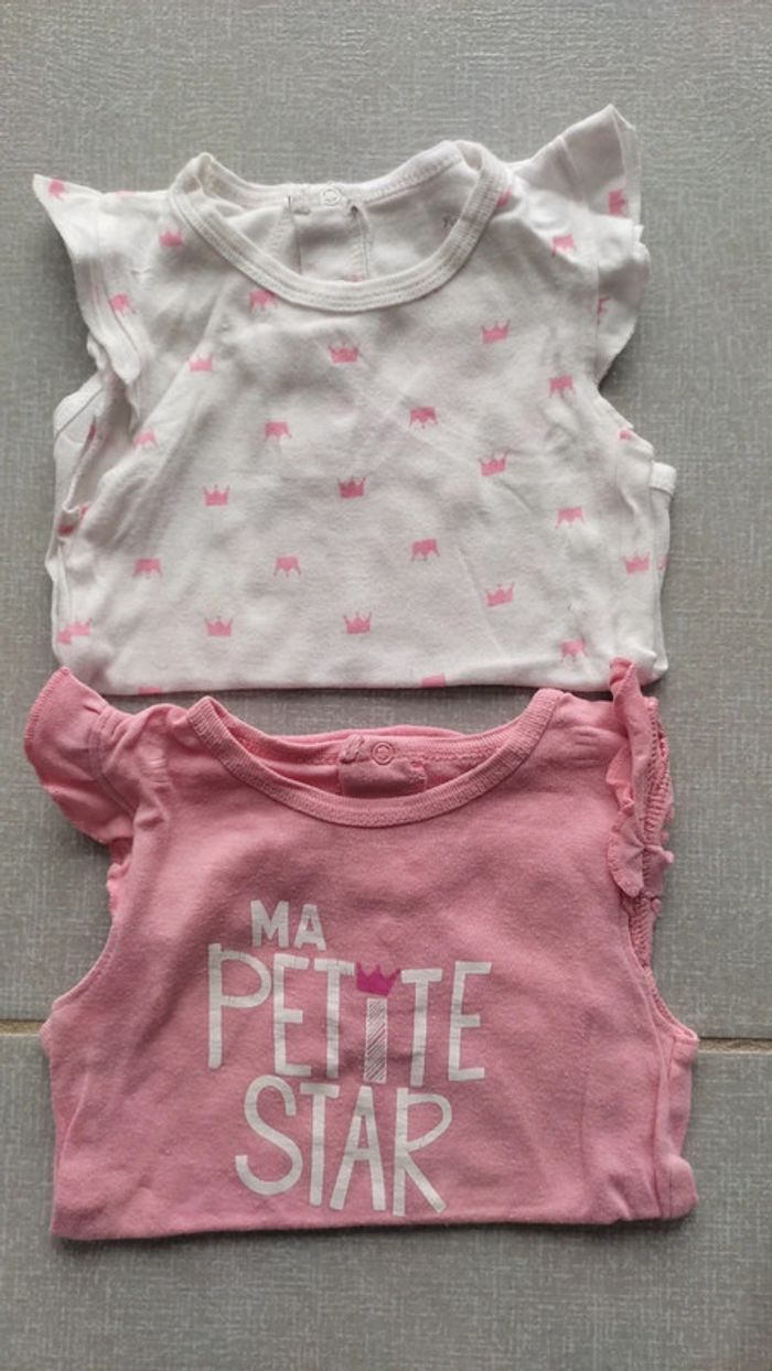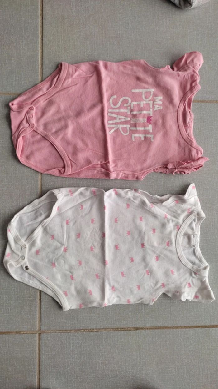 Lot de 2 bodys sans manches composé de : • 1 rose "ma petite star" • 1 blanc avec couronnes roses 100% coton Foyer non fumeur