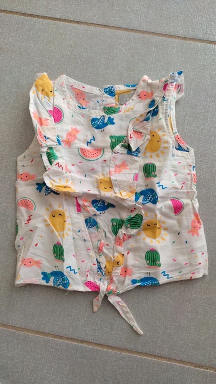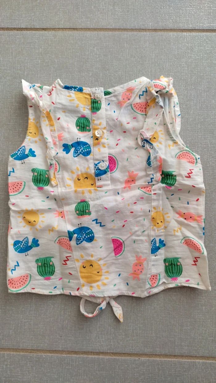 Débardeur léger à volants avec noeud au bas Boutons à l'arrière Motif soleil pastèque cactus été Taille 12-18 M (86 cm) 100% coton Foyer non fumeur