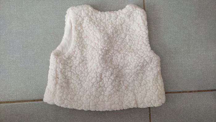 Doudoune sans manche fourrure Taille 12 mois 100% polyester / doublure 65% polyester 35% coton Foyer non fumeur