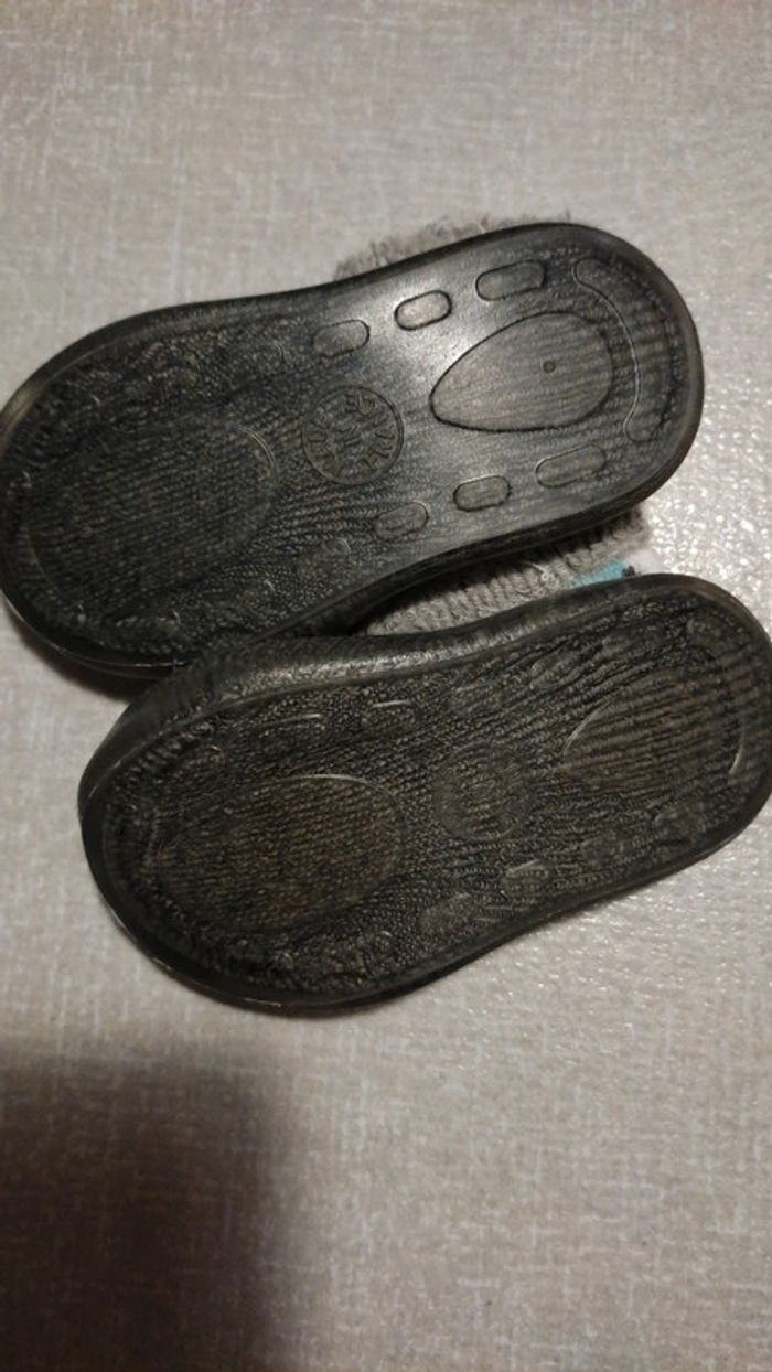 Chaussons qui s'enfilent comme des chaussettes avec semelles rigides Longueur 13 cm Semelles comme neuves, sur le dessus quelques fils tirés (voir photo) Made in France Foyer non fumeur