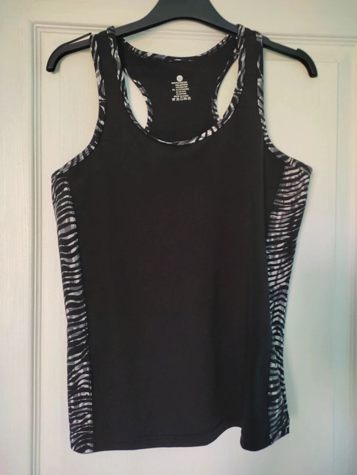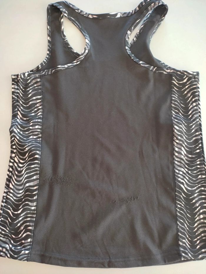 Débardeur de sport 95% polyester 5% elasthane Taille M/L (taille M, débardeur pas près du corps) Quelques marques d'usure (voir photos) Foyer non fumeur