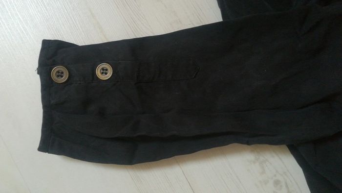 Chemisier 1 fermeture à pression + 1 bouton 2 poches latérales + 1 poche poitrine 140 cm de hauteur (épaule au bas) Matière légère