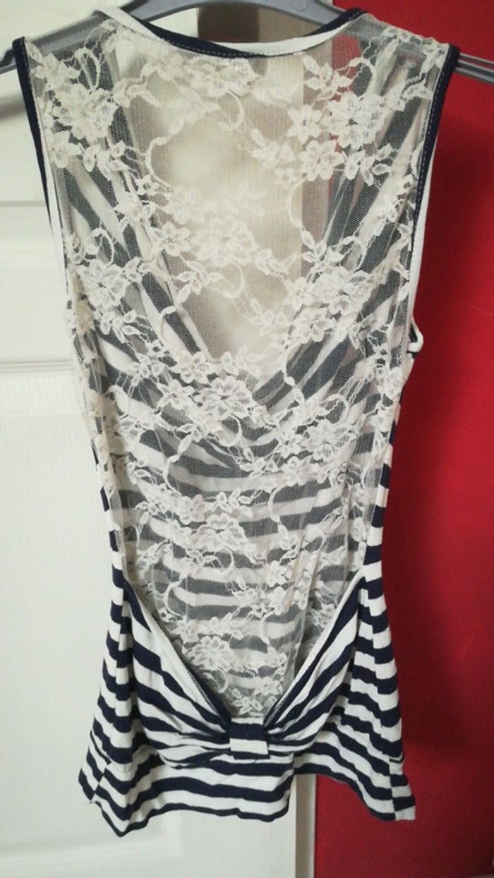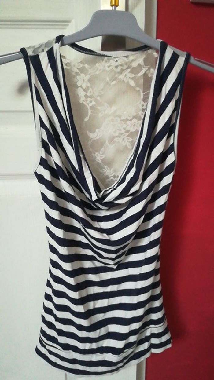 Débardeur rayé bleu / blanc Dos dentelle blanc 95% viscose 5% elasthanne