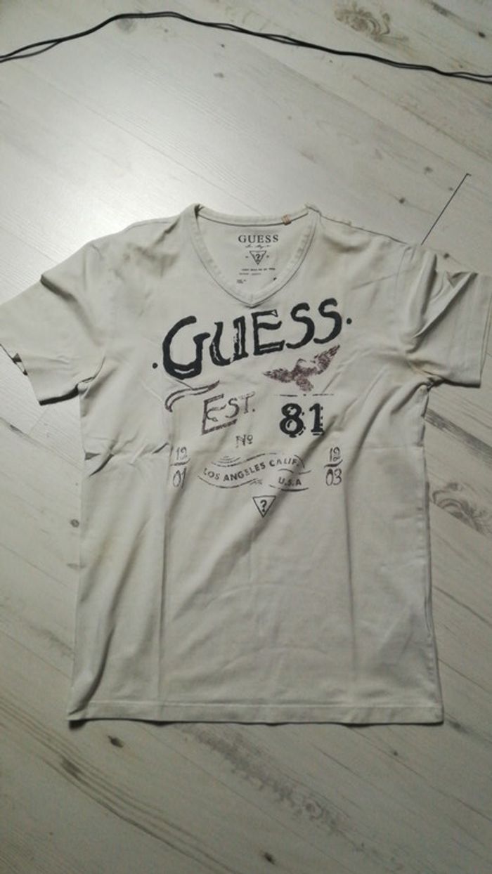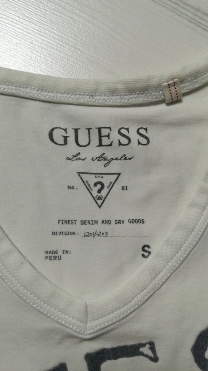 T-shirt Guess Taille S 94% coton 6% elasthanne Aisselles un peu jaunis (à voir si lavables avec détachant) Foyer non fumeur