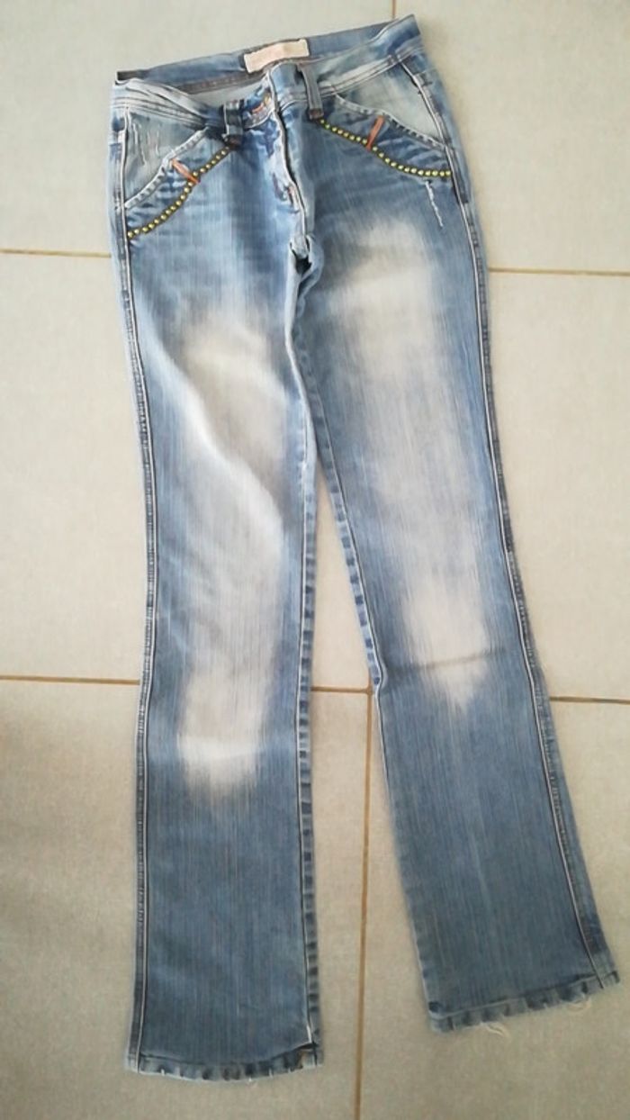 Jean Jennyfer Poches arrières avec boutons 98% Coton / 2% elasthanne Bas du pantalon usé (voir photo) Foyer non fumeur