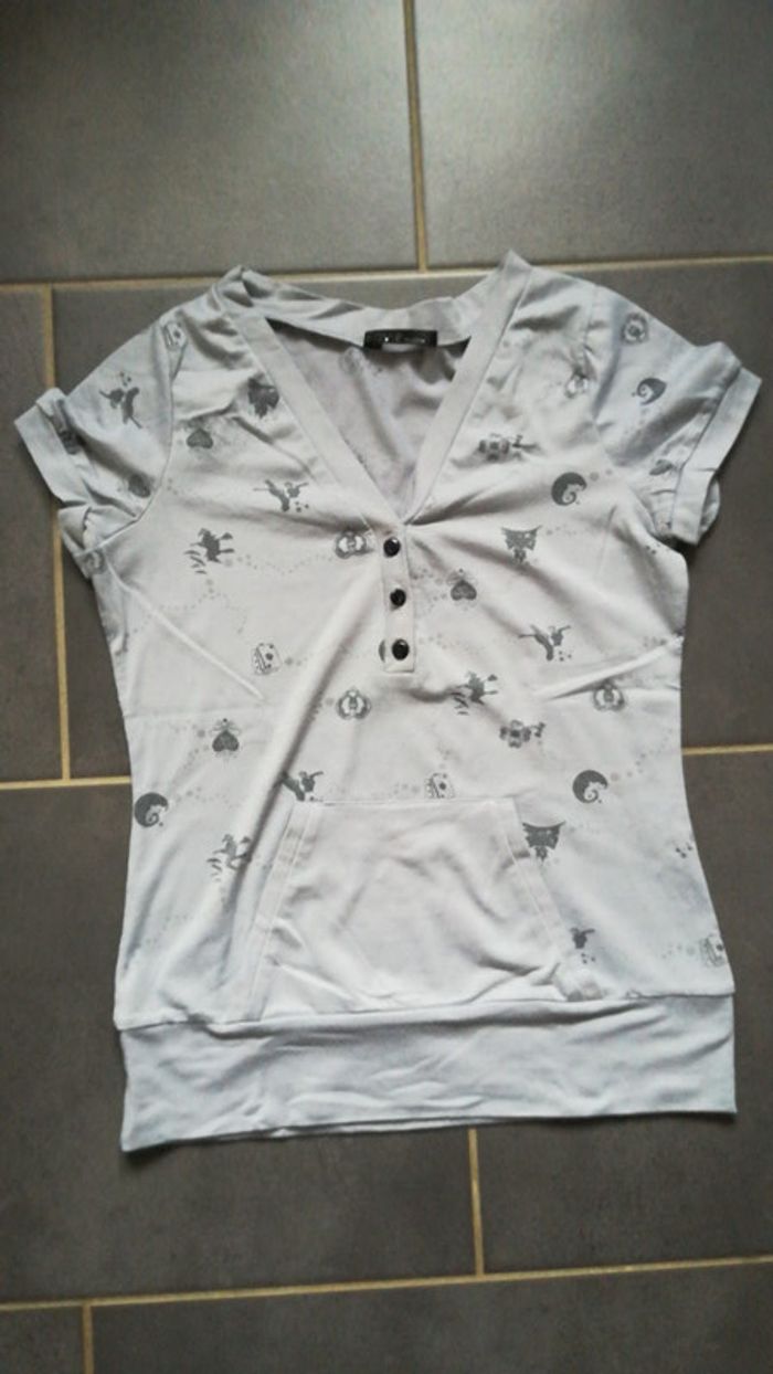 T-shirt gris motifs Halloween Belle coupe avec poche avant et boutons 65% coton 35% synthétique Foyer non fumeur