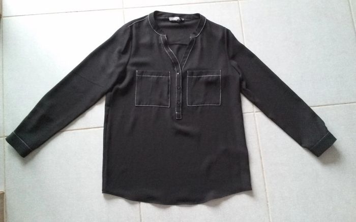 Tunique noire Primark Boutons au col et aux manches Neuve. Plus d'étiquette mais toujours le sachet avec un bouton de remplacement attaché sur l'etiquette pour preuve preuve 100 % polyester T.38