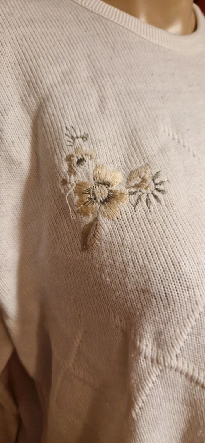 Pull blanc petites fleurs taille M - photo numéro 2