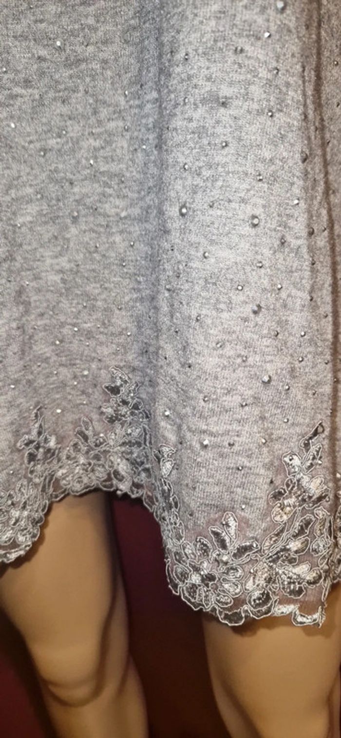 Beau pull long neuf avec etiquette taille S/M M&V strass et dentelle en bas - photo numéro 3