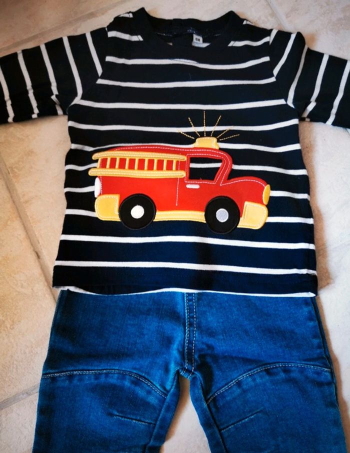 Pompier T-shirt à manches longues et pantalon jean Rayé Marinière Excellent état comme neuf #tiffanyostertag_garçon6mois