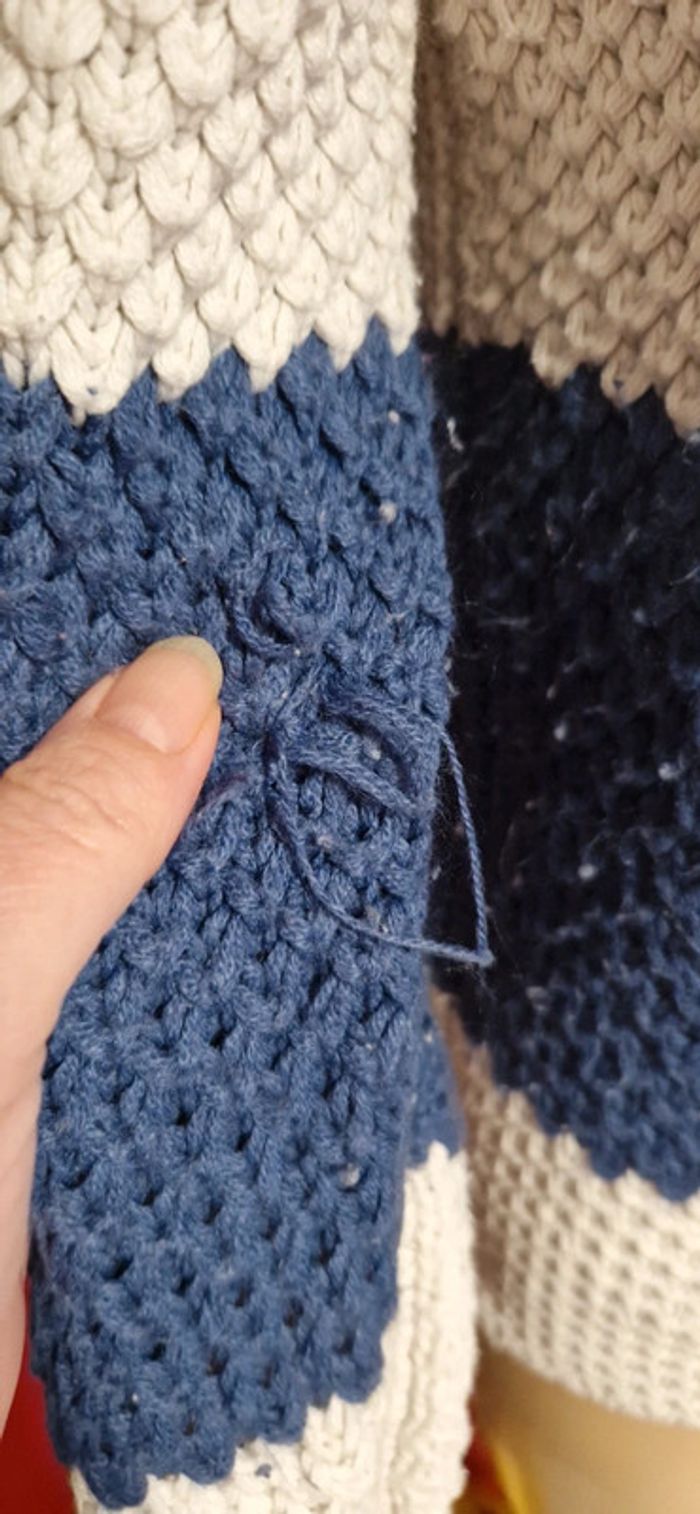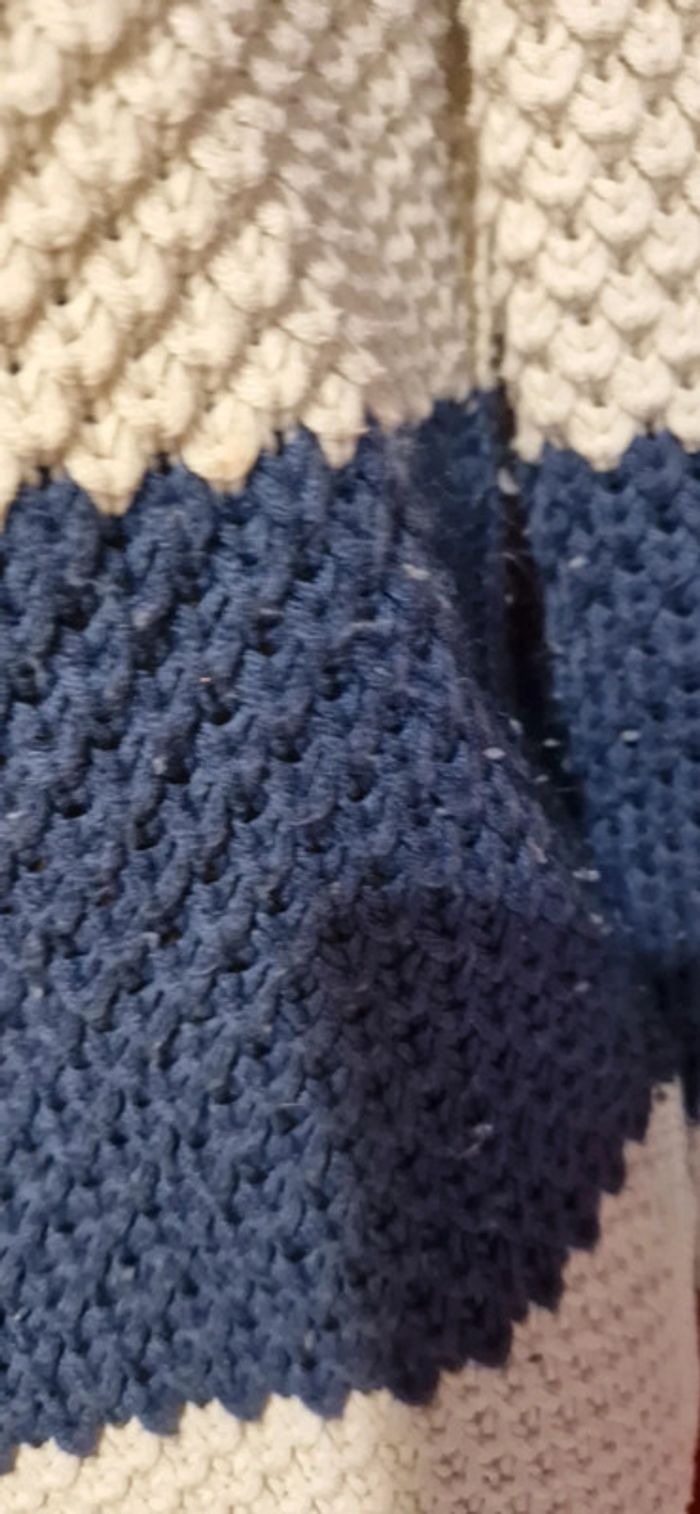 Porté quelques fois, un fil sorti et quelques peluches voir photos #pull #grossemaille #bleuetblanc #rayureshorizontales #envoirapide #pascher #gemo #femme #taillem