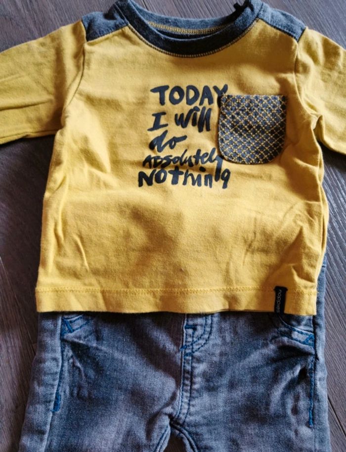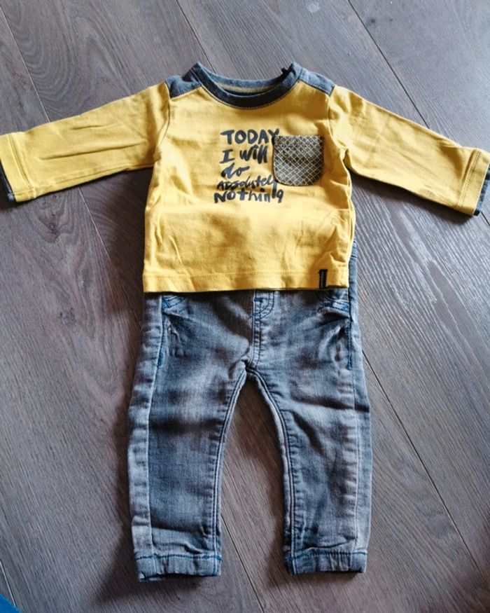 T-shirt à manches longues et pantalon jean Gris et jaune 62 cm Porté 2x comme neuf #tiffanyostertag_garçon3mois
