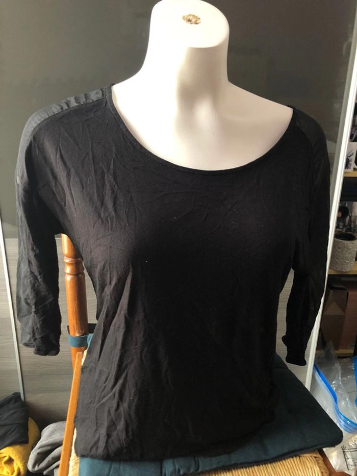 Haut noir bande transparente épaules et bras, manches 3/4 taille S - photo numéro 1