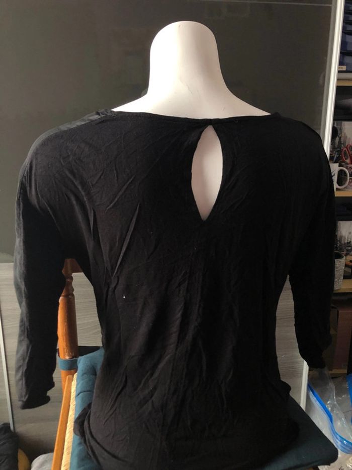 Haut noir bande transparente épaules et bras, manches 3/4 taille S - photo numéro 3