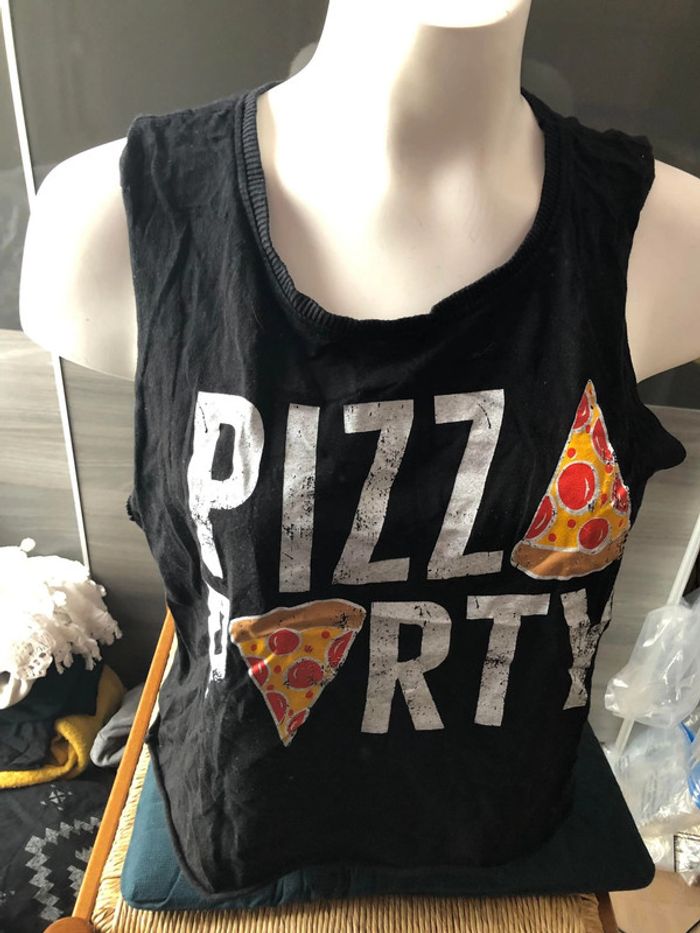 Débardeur court noir pizza party taille M - photo numéro 1