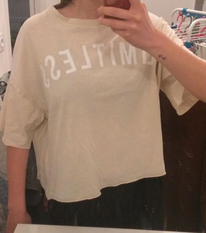 Tee shirt beige oversized taille M Bershka - photo numéro 1