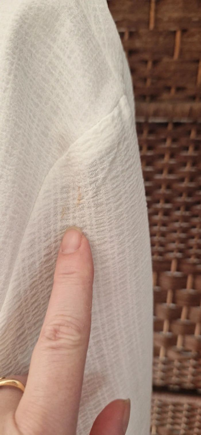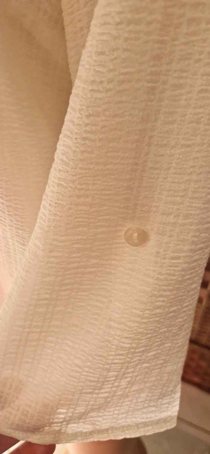 Porté quelques fois , manche peuvent être raccourcie avec bouton, et petite tache quasi invisible sur une épaule voir photos #taille46 #femmeforte #crème #canda #candapremium46