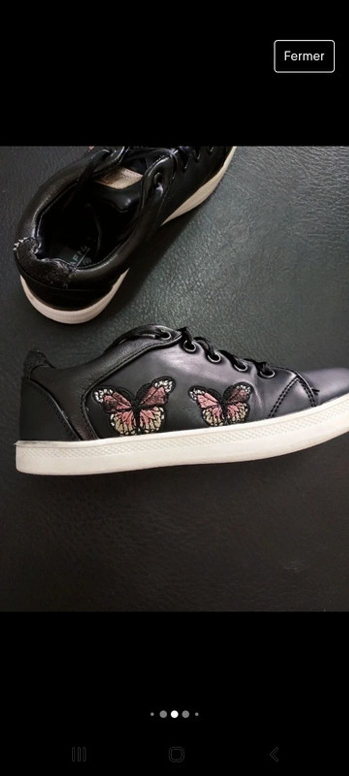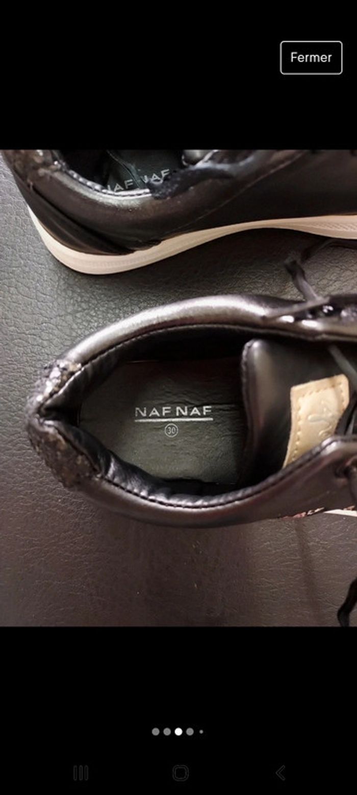 En très bon état La troisième paire à une légère petite imperfection sur le devant d'une des baskets Baskets à lacets Naf Naf légère imperfection sur le devant #lotbasketsfille30